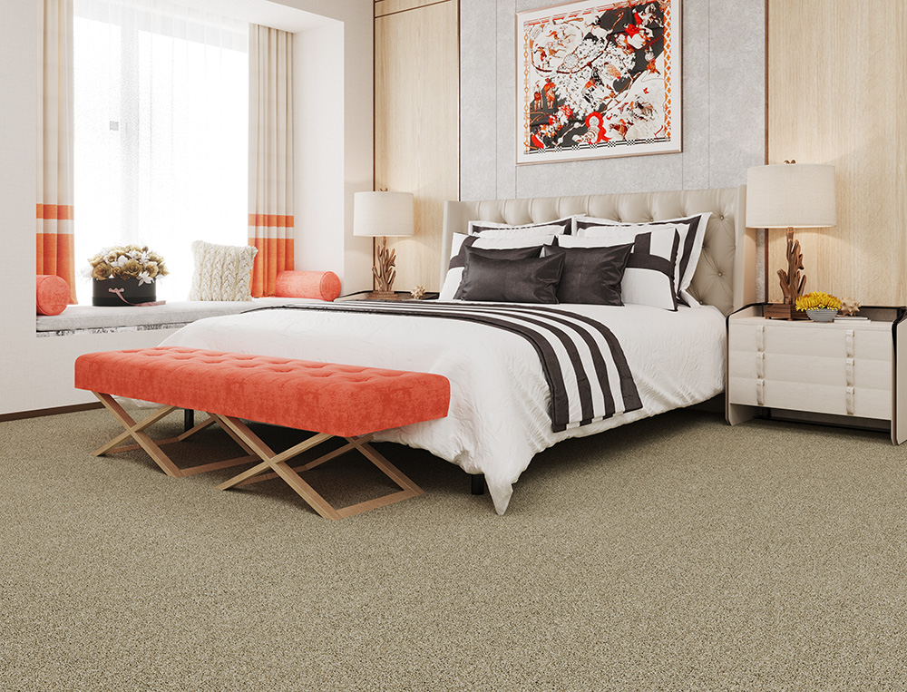 With a color line ranging from subtle neutrals to deep earth tones, this cut pile carpet makes for a cozy accent to the home.